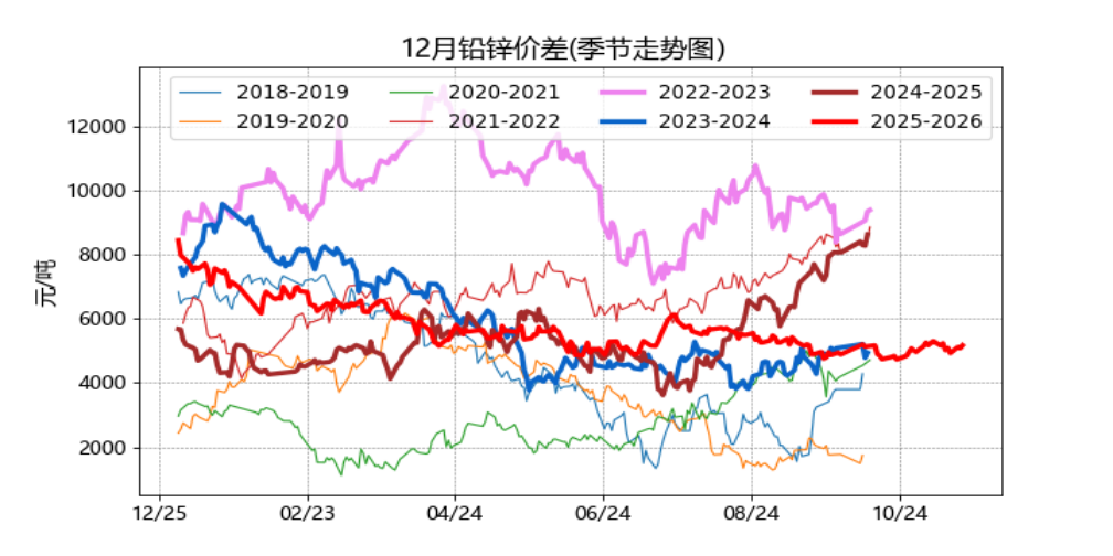 11月19日,12月铅锌价差(指锌-铅)为5170.0。过去五年最大值为13245.0,过去5年最小值为3620.0,过去5年中位数为6470.0。过去1年最大值为8695.0,过去1年最小值为4730.0,过去1年中位数为5615.0。2024年同期价差为8250.0,2023年同期价差为4400.0。