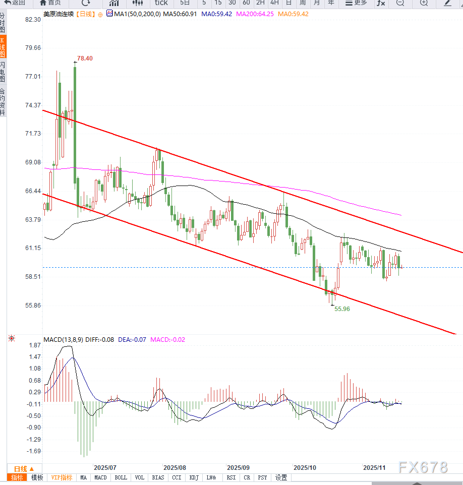 若油价进一步跌破58.50至59.00美元的关键支撑区间,将有可能打开指向56美元的下探空间;若出现反弹,则需在61.00美元上方重新站稳,才可能扭转当前弱势格局。