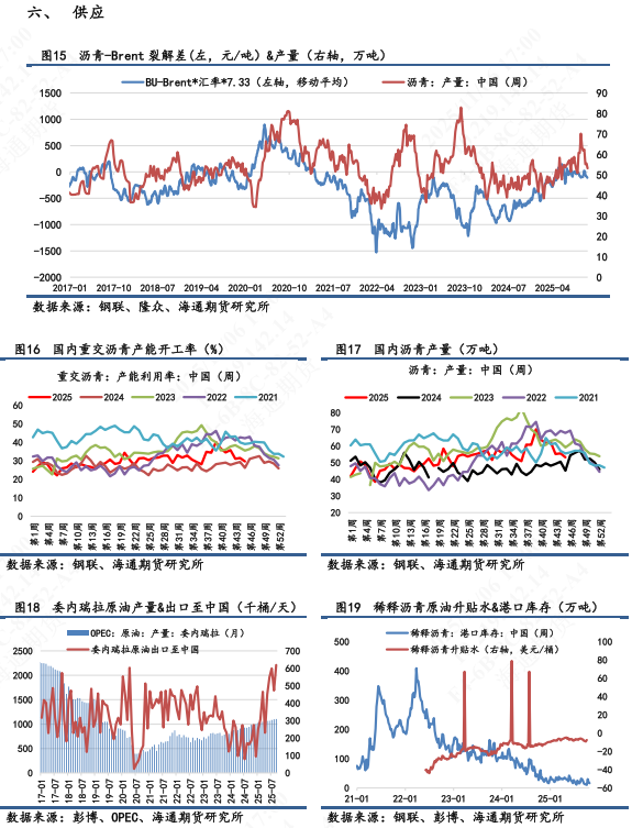 【4】基本面变化:下游需求开工率不高,库存被动去库,供应压力渐在,基本面平淡。目前地炼沥青价格维持在3040-3160元/吨。下游对高价货接货意愿低,市场观望情绪浓厚。叠加成本端支撑大幅减弱,沥青价格回落明显。