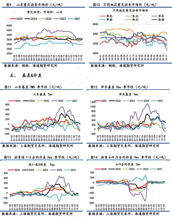 【2】现货市场:①山东重交沥青现货价为3140元/吨,环比持平,7天累计跌幅6.8%。山东基差为-9元/吨,7天累计跌幅50元/吨,基差回落明显。②最便宜可交割品种市场价为3040元/吨,即70#沥青山东弘润开价。③华东现货均价为3354元/吨,升水与期货。华东基差为331元/吨,7天累计涨幅140元/吨。