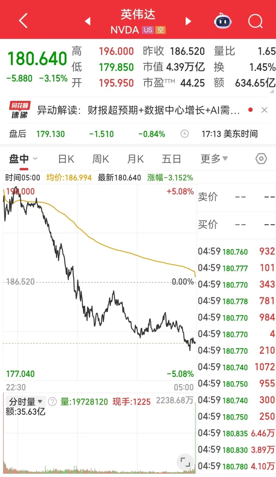 英伟达报180.64美元,收盘跌3.15%,市值一夜蒸发1429亿美元(约合人民币10169亿元),黄仁勋在财报电话会上表态试图打消市场疑虑。