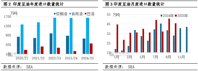 2024/25年度印度豆油进口量升至历史新高,为豆油走高提供支撑