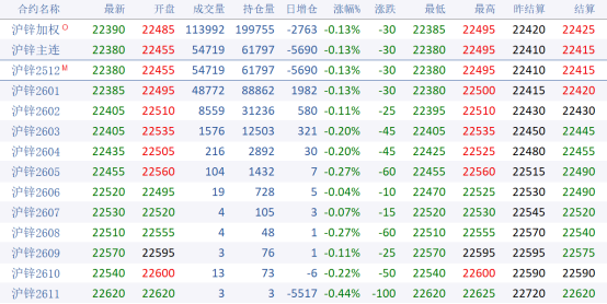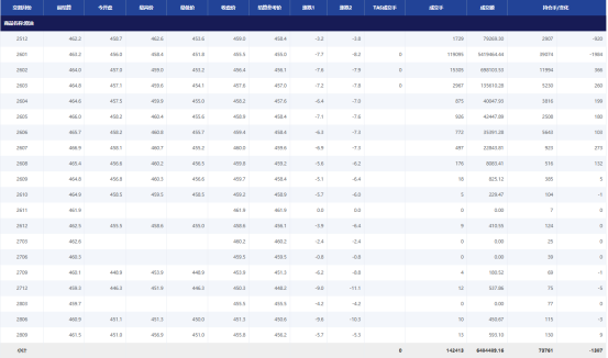 各合约普遍收跌,市场总持仓量为7.37万手,较上一交易日减少约1300手。