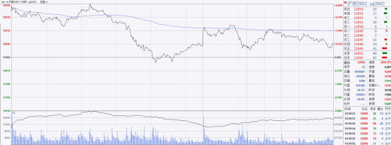 沪银主力2602合约当日走势高开低走震荡调整,开盘报12290元/千克,盘中最高触及12306元/千克,最低下探至11912元/千克,收盘报 12050元/千克,涨幅 0.75%。