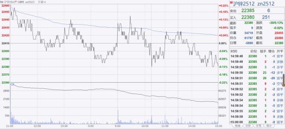 2025年11月20日,今日沪锌市场呈现“期货微跌、现货微涨、基差由贴水转升水”特征。主力合约ZN2512收盘22380元/吨,较前日微跌0.13%,成交量与持仓量双降,资金观望情绪浓厚。