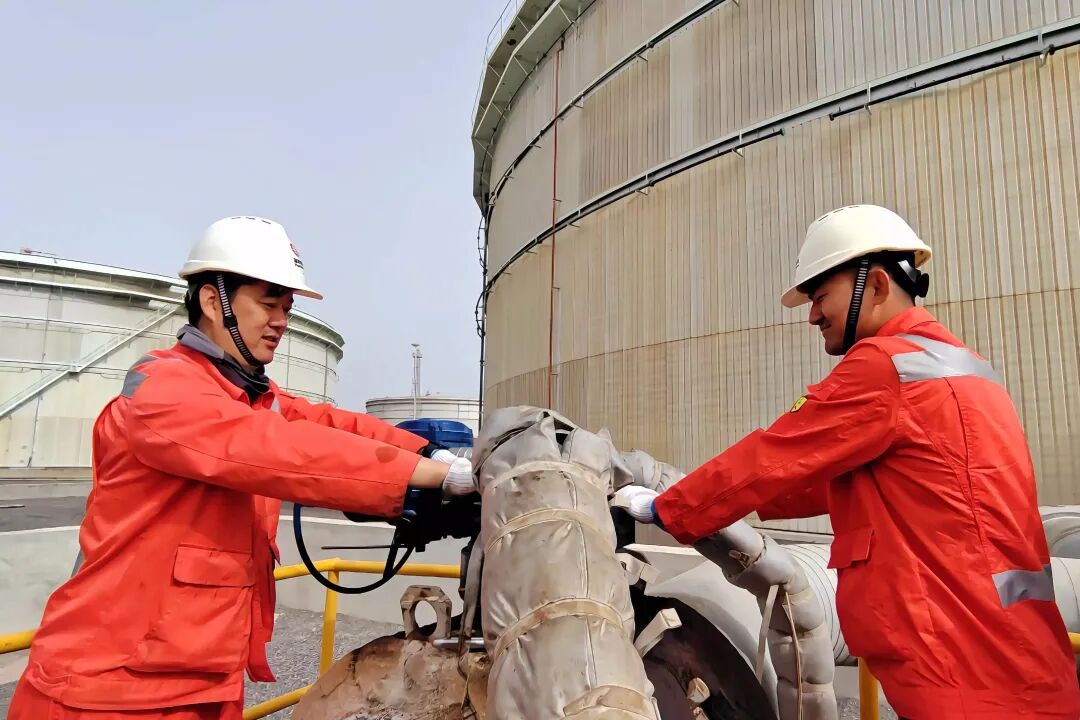 ▲2025年10月,国家管网集团西部管道公司员工正在对油库阀门进行维护保养。(高盛驰摄)