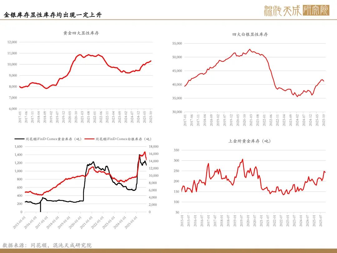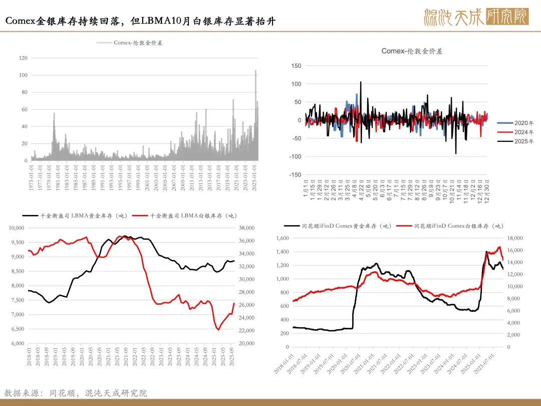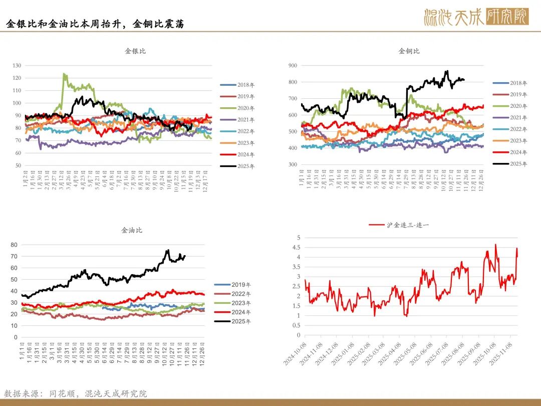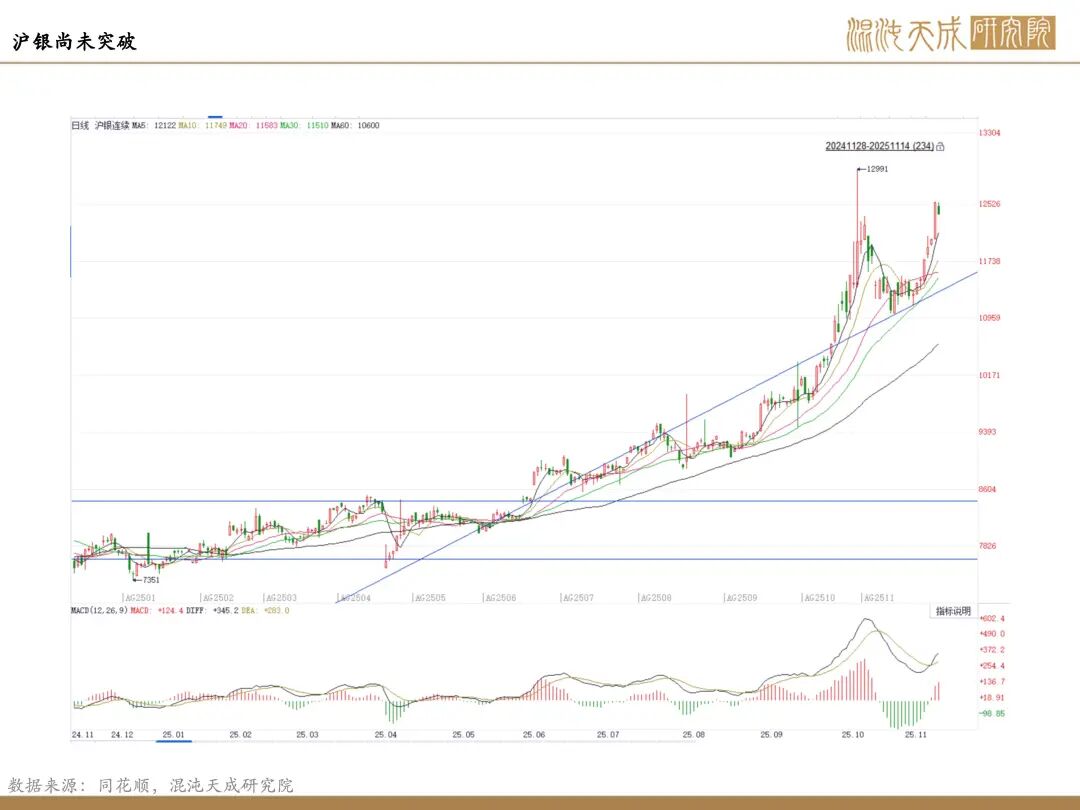 美联储官员密集鹰派发言:巴尔表示对通胀仍处于3%水平表示担忧,需要支持劳动力市场,但需使通胀恢复至2%;哈玛克表示进一步降息可能会延长高通胀,以及带来金融稳定风险;古尔斯比表示对12月降息表示不安,不愿过度押注“暂时性通胀”;库克表示若处于历史高位的资产价格出现崩跌,不会感到意外;美联储10月的会议纪要显示出严重分歧,本月在缺乏数据指引的情况下仍维持分歧。美国劳工统计局表示,将不会发布10月非农就业报告,而是把相关的就业数据纳入11月报告并将于12月16日发布,这一日期是在美联储今年最后一次会议之后。随着数据缺乏指引,美联储分歧加大,市场的降息预期持续回落,基本不定价12月的降息(27%),这也严重抑制贵金属的走势。