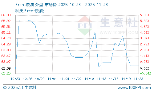 后市来看,原油市场供应过剩大势下油价重心有自然下行驱动,但地缘因素不断给市场注入不确定性,并在一定程度上对冲供应过剩的下行压力,油价维持震荡反复的运行节奏,短期仍将继续保持高波动特征。截止11月20日,美国WTI原油期货1月合约结算价报59.00美元/桶,布伦特原油期货2月合约结算价报62.80美元/桶。