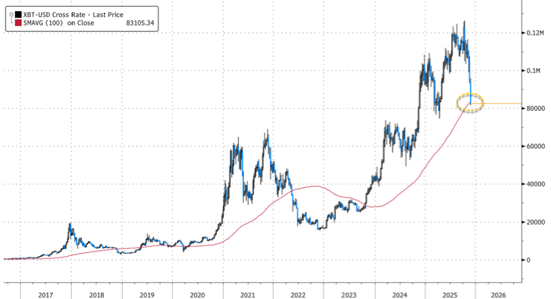 值得注意的是,此轮暴跌导致隔夜交易时段近10亿美元头寸被清算,引发市场对加密货币市场熊市加深的担忧。同时,比特币技术面也进一步恶化。