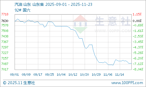 进入本轮计价周期,国际油价行情小幅走低,截止21日,美国WTI原油期货1月合约结算价报58.06美元/桶,布伦特原油期货2月合约结算价报61.94美元/桶。本轮调价周期内,原油价格行情小幅走低,本周期内欧佩克+新一轮增产,市场依然担忧长线的供应过剩风险,地区局势有所缓和,加之美国需求减弱,美国关税问题拖累全球经济和需求预期,导致国际油价行情小幅下滑。截止24日,第十个工作日原油品种变化率为-1.61%,对应国内油价每吨汽油下调70元,每吨柴油下调65元,折合每升下调89#0.05元、92#0.06元、95#0.06元、0#0.06元。