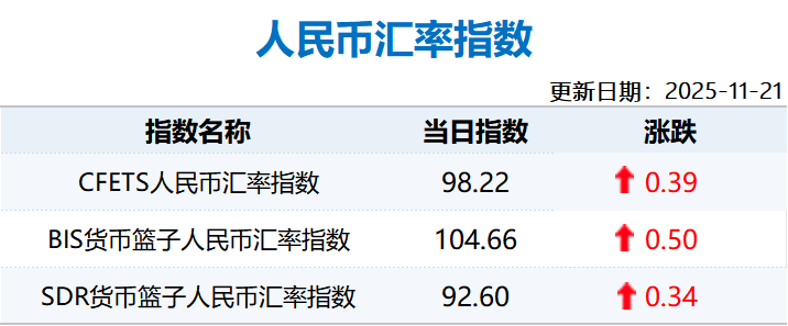 【市场速递】11月21日人民币汇率指数