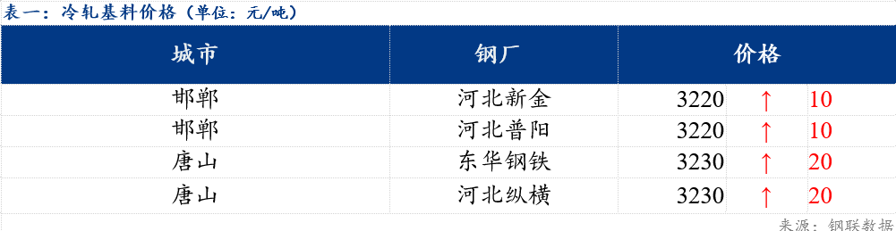 今日北方市场冷轧基料3.0*1010*CSPHC河北普阳价格为3220元/吨,较上一期价格上涨10元/吨,河北纵横价格为3230元/吨,较上一期价格上涨20元/吨。镀锌方面,今日北方市场价格涨跌互现,河北万利和邯郸日鑫钢厂价格下跌20元/吨,沧州中铁钢厂价格上涨5元/吨;轧硬方面,当前主流报价3395-3460元/吨。市场方面,今日河北纵横和沧州中铁价格三次发生调价,贸易商报价幅度不大,临近钢厂结算周期整体仍以出货为主,北方大户日度成交500吨,成交不温不火。