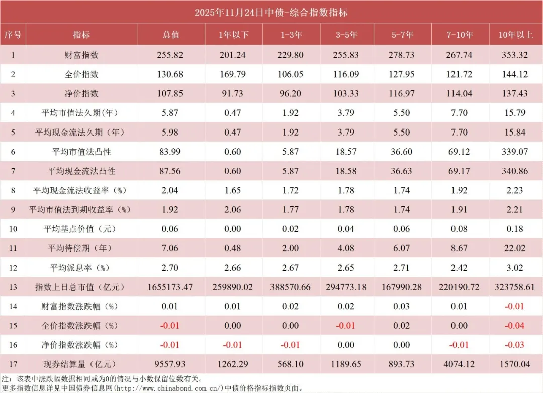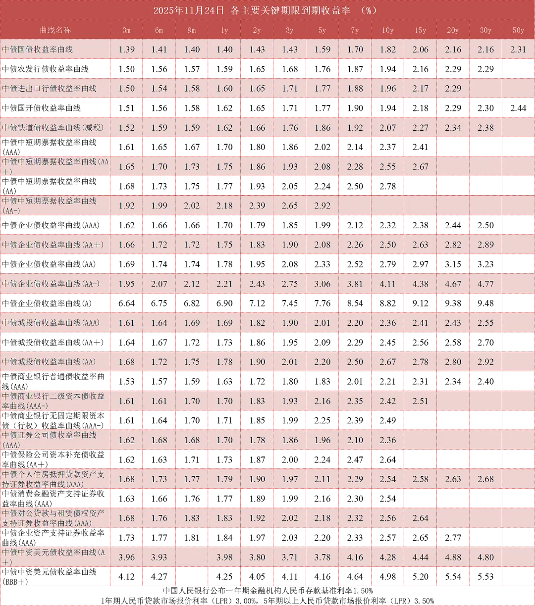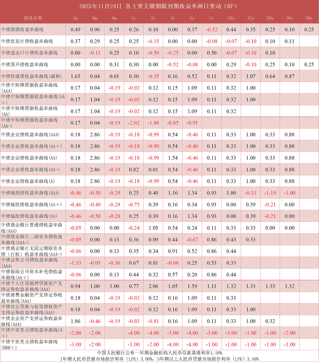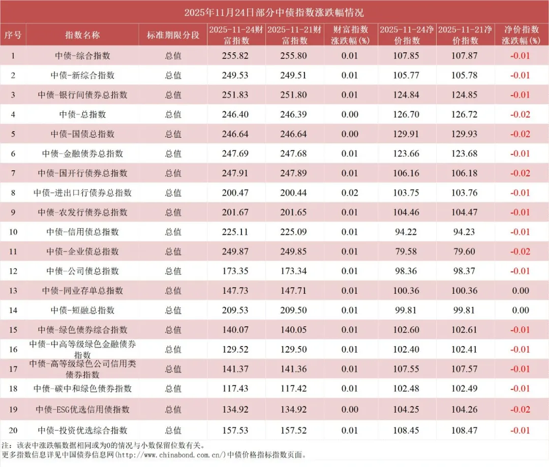 债市值言:中债收益率曲线和指数日评2025年11月24日