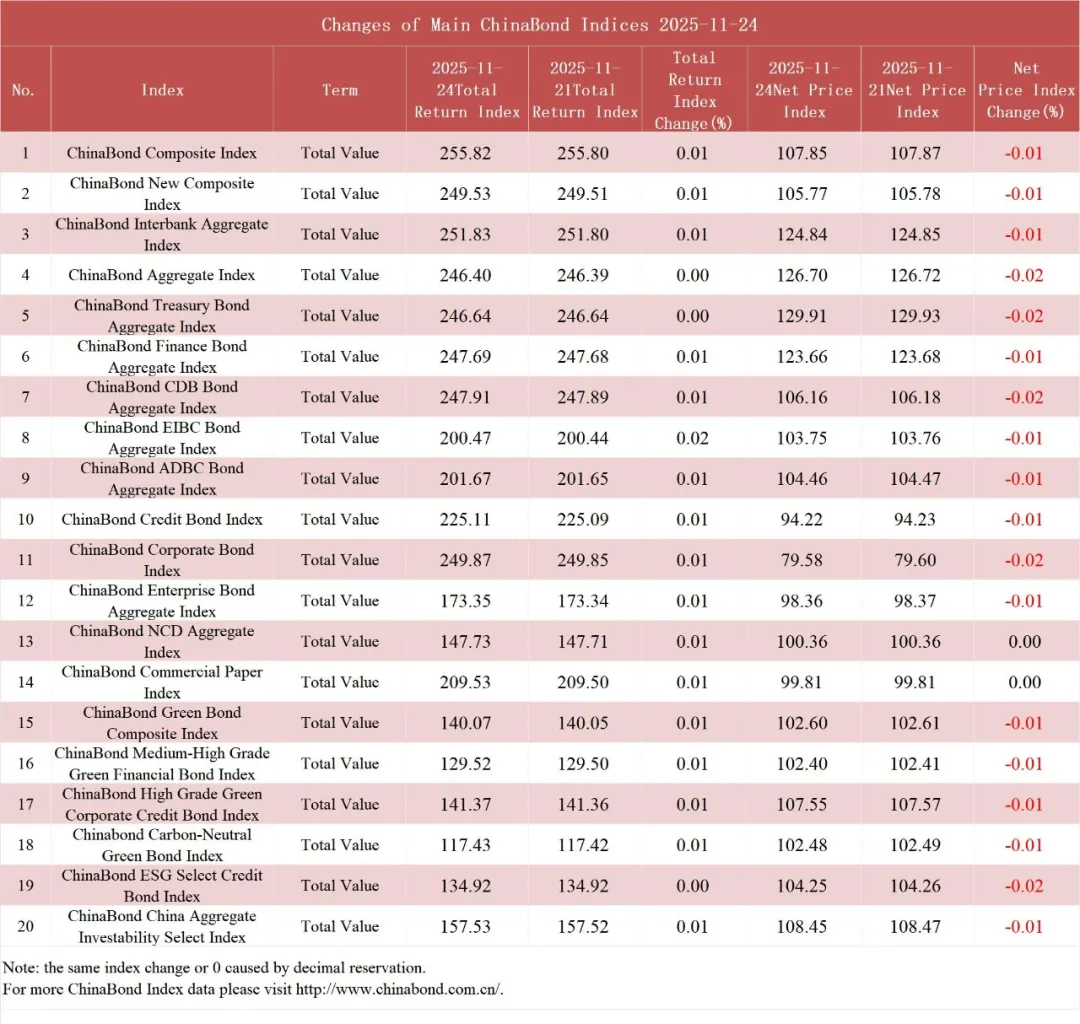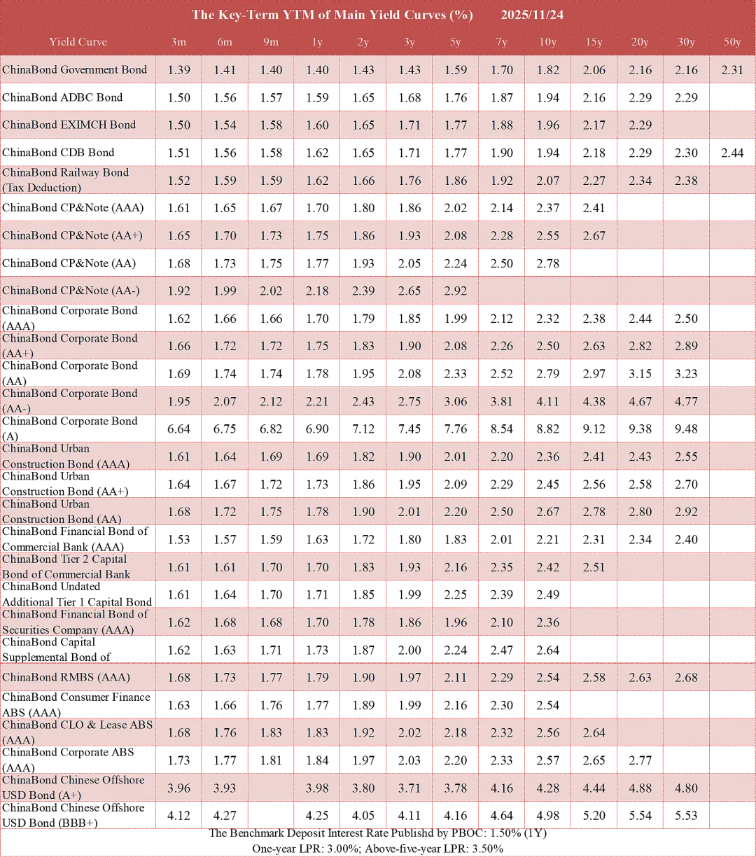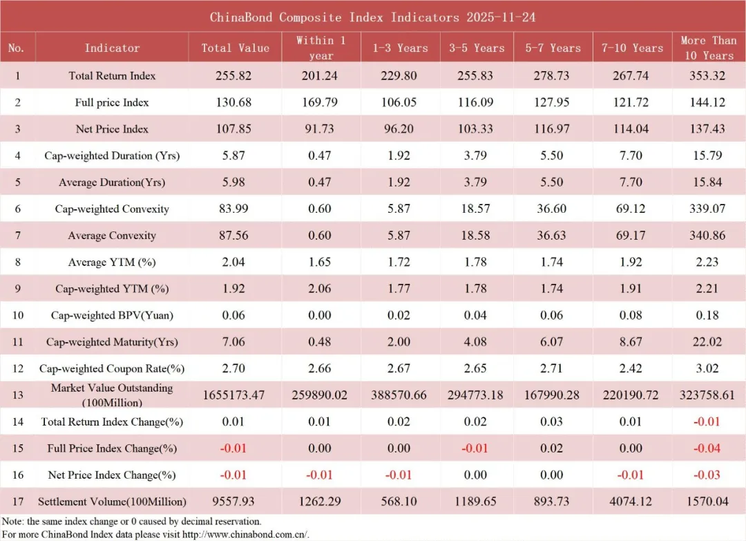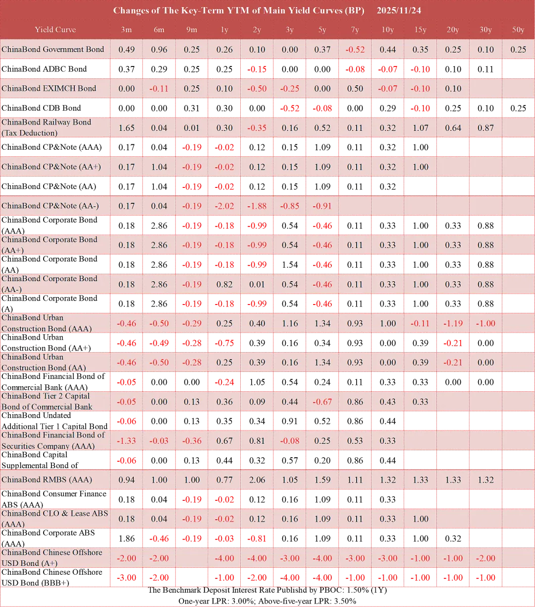 债市值言:中债收益率曲线和指数日评2025年11月24日