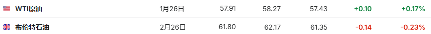 3. 截至发稿,WTI原油涨0.17%,报57.91美元/桶。布伦特原油跌0.23%,报61.80美元/桶。