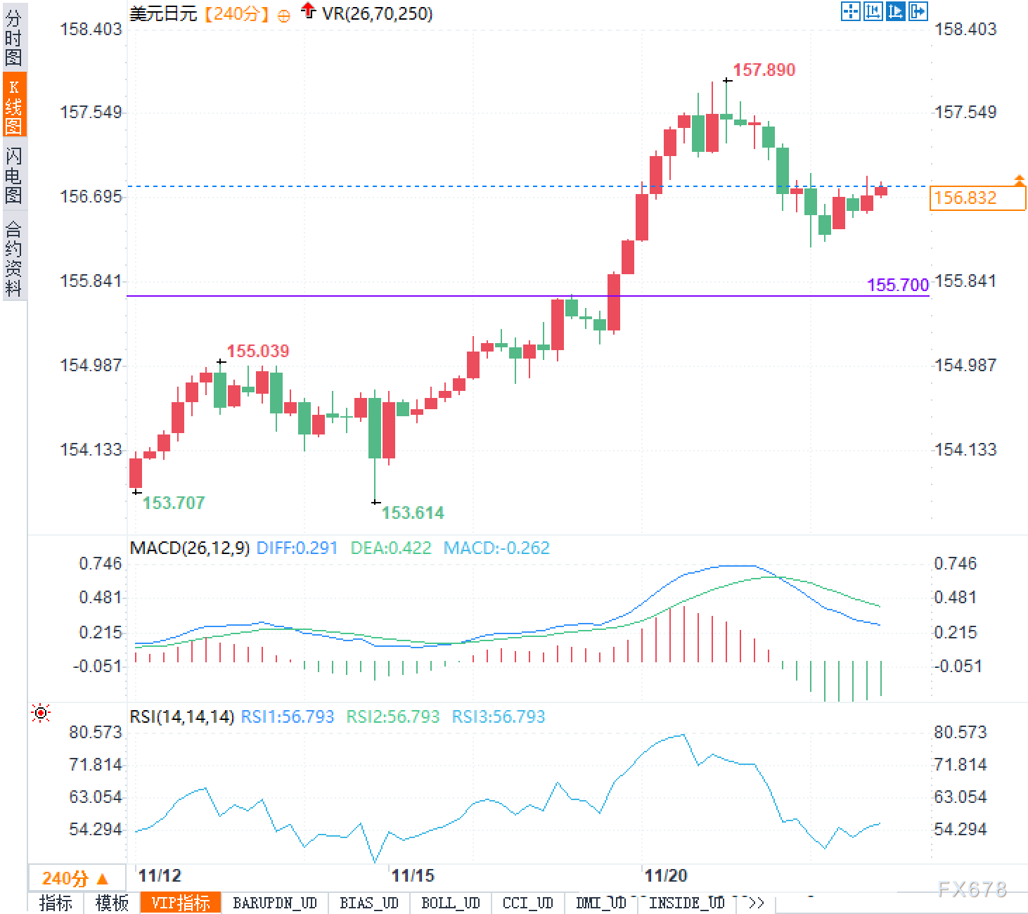 汇通财经APP讯——11月24日,星期一。当前北美时段美元兑日元于156.80水平附近运行,市场整体处于政策预期博弈与宏观数据交织影响的敏感阶段。近期全球外汇市场的主线逻辑并未发生根本性转变,美元仍受相对坚挺的利率前景支撑,而日元则在财政与货币政策的微妙平衡中持续承压。