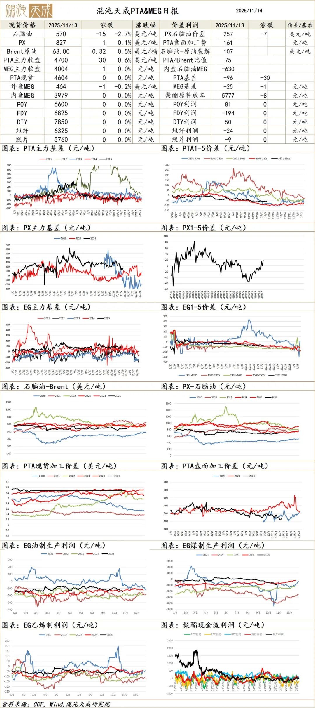 结论:PX、PTA自身供需正处于强弱转换预期中。反内卷暂无实质进展,行业联合减产预期下降。原油及调油驱动转弱、基本面中性偏弱,反内卷中性,驱动看有转弱。