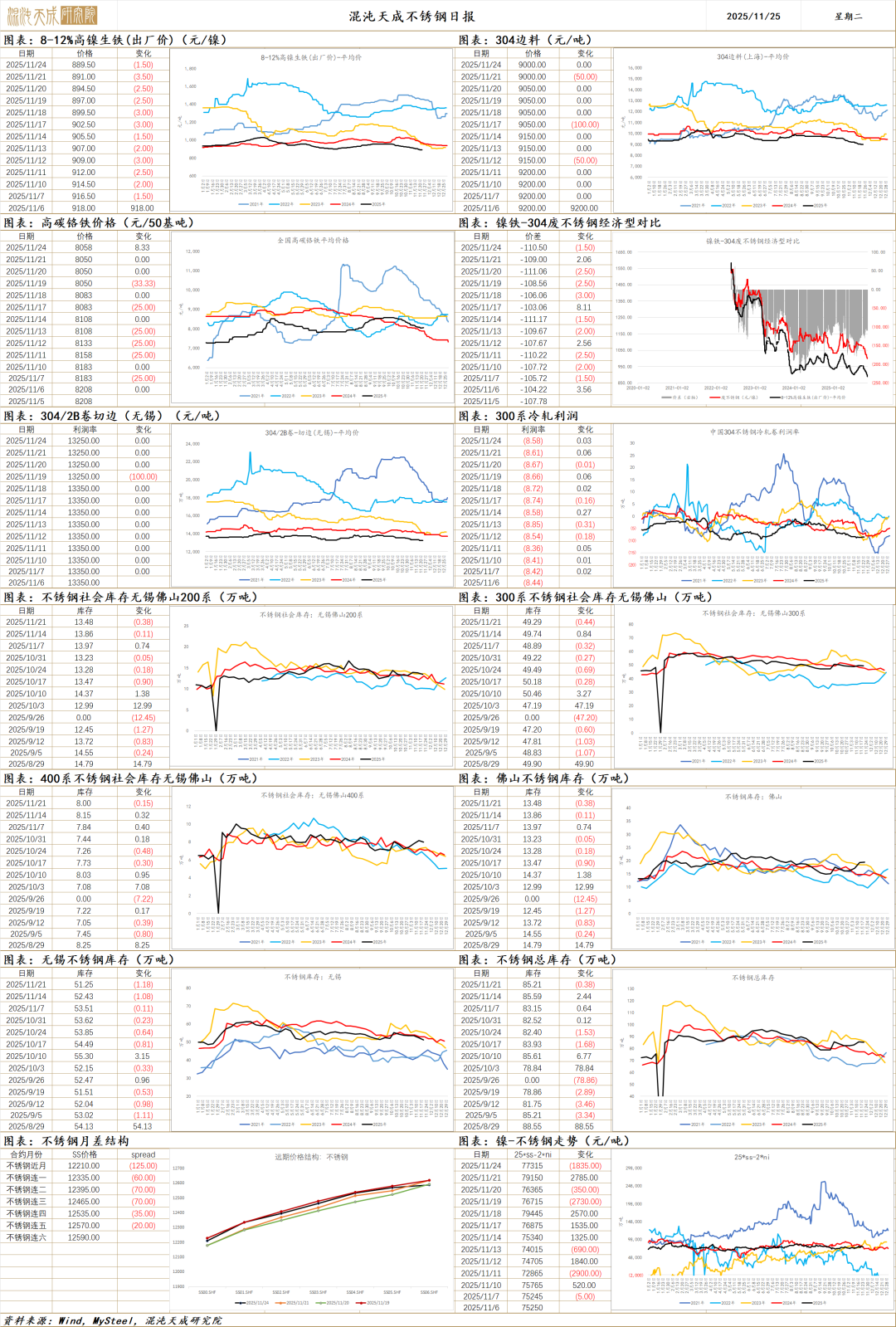 1、【浦项不锈钢一个月内发生两起事故】综合台媒2025年11月24日消息,韩国浦项钢铁(POSCO)旗下不锈钢厂在一个月内接连发生两起安全事故,引发外界对其生产管理和供应链稳定的关注。据了解,这两起事故分别发生于11月5日和11月20日,均造成人员伤亡。钢厂随后于11月21日解除了不锈钢厂厂长的职务,显示出企业对安全问题的高度重视和问责态度。事故发生后,该不锈钢厂已暂停生产,以配合安全检查和事故原因调查。作为韩国重要的不锈钢供应来源,其停工是否会导致市场供应缺口成为业内关注的焦点。然而,根据贸易商和当地业者的反馈,截至目前,不锈钢供给缺口尚不明显。(51bxg快讯)