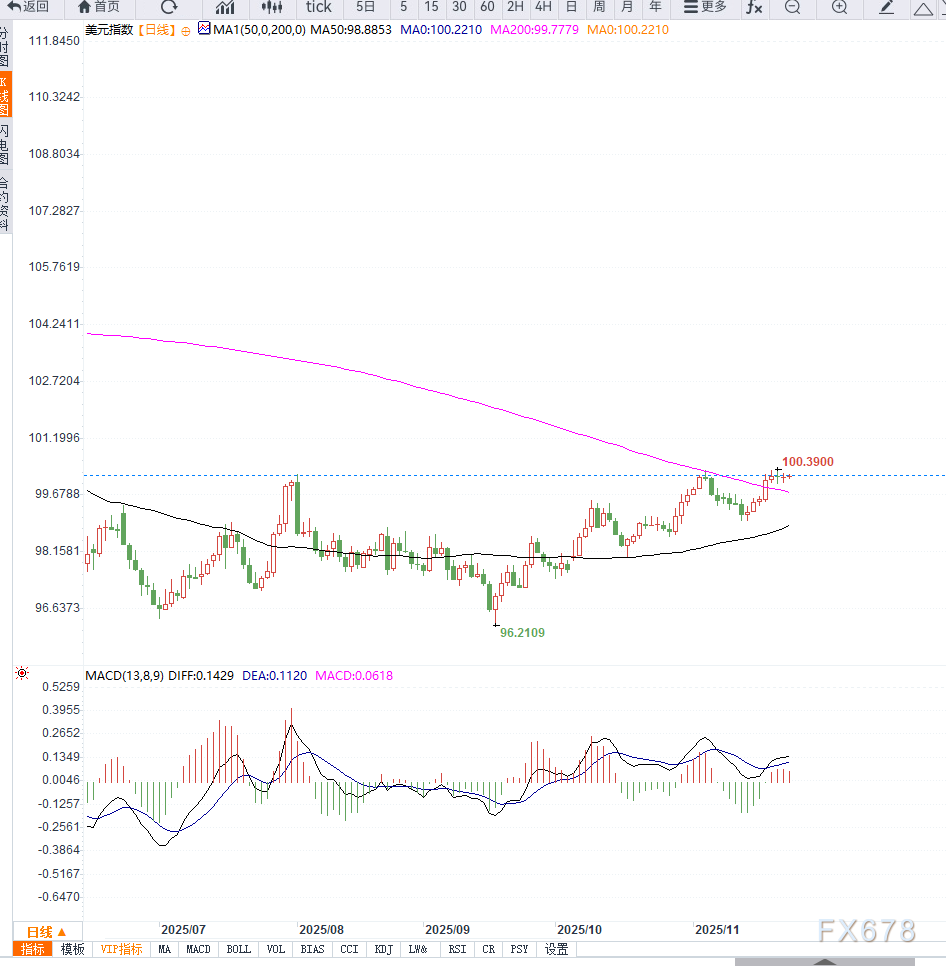 反之,如美国经济数据明显好于预期,使美元情绪短线改善,DXY需重新站上100.60才有望修复部分技术结构,进而挑战101.20的压力区。整体来看,美元指数短线仍处弱势通道,基本面与技术面暂未提供反转信号。