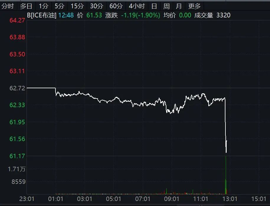 国际原油盘中直线跳水,WTI原油跌近2%,布伦特原油期货跌幅扩大至逾2%。