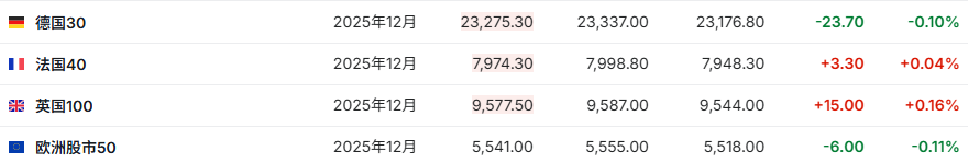2. 截至发稿,德国DAX指数跌0.10%,英国富时100指数涨0.04%,法国CAC40指数涨0.16%,欧洲斯托克50指数跌0.11%。