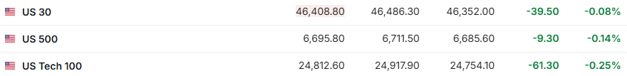 1. 11月25日(周二)美股盘前,美股三大股指期货齐跌。截至发稿,道指期货跌0.08%,标普500指数期货跌0.14%,纳指期货跌0.25%。