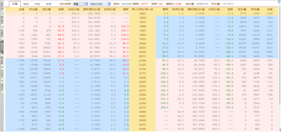MA甲醇期权行情表