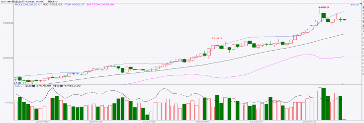 COMEX黄金加权合约价格周K走势