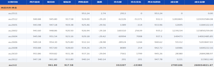 上期所黄金期货每周行情数据图