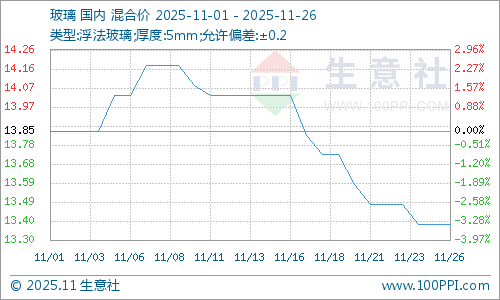 需求方面:据生意社商品分析系统显示,11月26日玻璃市场均价维持13.38元/平方米。玻璃产线开工稳定,企业库存继续累积,下游采买刚需跟进,市场成交一般,玻璃市场库存量偏高,玻璃价格弱稳运行。