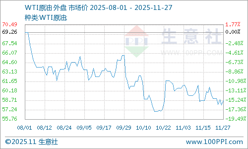 11月26日,国际原油期货上涨。美国WTI原油期货1月合约结算价报58.65美元/桶,涨幅0.70美元或1.2%。布伦特原油期货2月合约结算价报62.54美元/桶,涨幅0.74美元或1.2%。