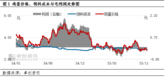 11月份全国鸡蛋需求表现疲软,鸡蛋价格长期低于饲料成本线,且饲料原料价格小涨,蛋鸡养殖亏损空间略有扩大。12月份鸡蛋需求淡季持续,需求改善时间有限,价格或长期低位后小幅上涨,而饲料成本或微涨后再跌,预计12月份蛋鸡养殖亏损空间减小。