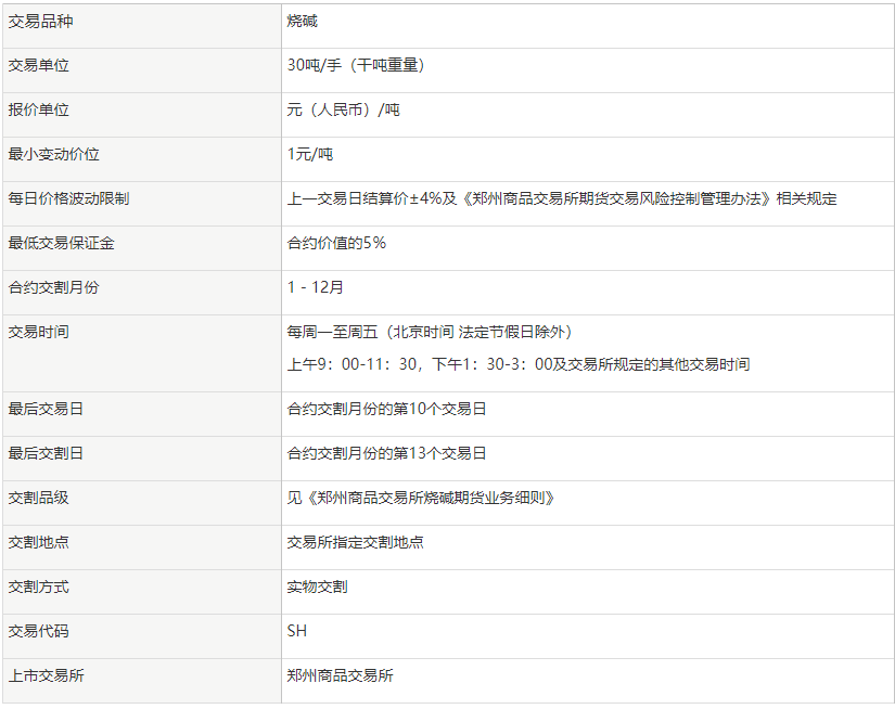 烧碱期货合约规则及要点介绍