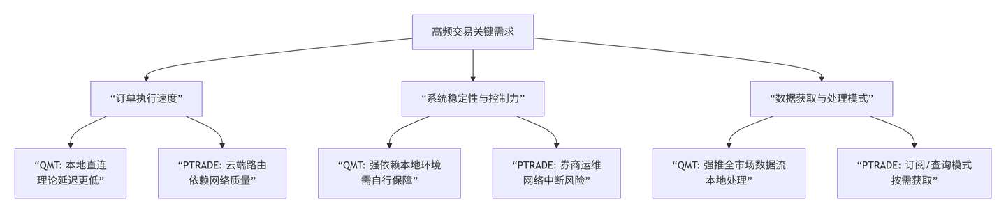 总而言之,这是一个“控制权”与“便利性”的经典权衡。QMT把控制权交给您,让您有能力追求极致的速度,但也把责任和风险一并交付;PTRADE用一部分控制权换取了基础设施的便利性和专业性,为大多数高频交易者提供了一个更省心的“准专业”解决方案。