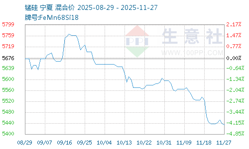本月硅锰走势持续低迷,期现价格阶梯下滑。锰矿市场虽仍有探涨情绪,进入淡季钢厂开工大多稳定,但钢厂对硅锰价格高位资源的接受度较弱。硅锰产区端虽有局部减产检修情况,但整体供应压力并未得到有效缓解,且期现成交偏低,工厂出货不畅而库存压力增加。根据生意社商品行情分析系统的数据显示,本月末硅锰在宁夏地区(规格为FeMN68Si18)的市场报价在5350-5500元/吨左右,市场均价5440.00元/吨,较月初下跌2.79%。