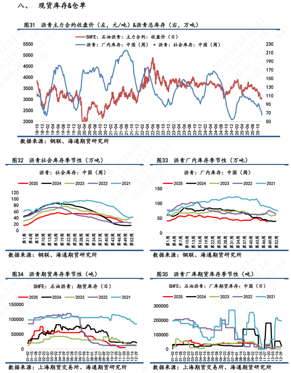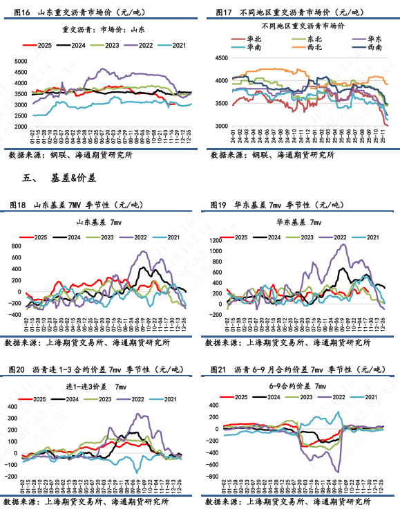 【2】现货市场:①山东重交沥青市场价为3030元/吨,环比持平,7天累计0%。山东基差为-30元/吨,7天累计-11元/吨。②华东重交沥青市场价为3240元/吨,环比持平,升水期货。华东基差为180元/吨,7天累计-121元/吨。