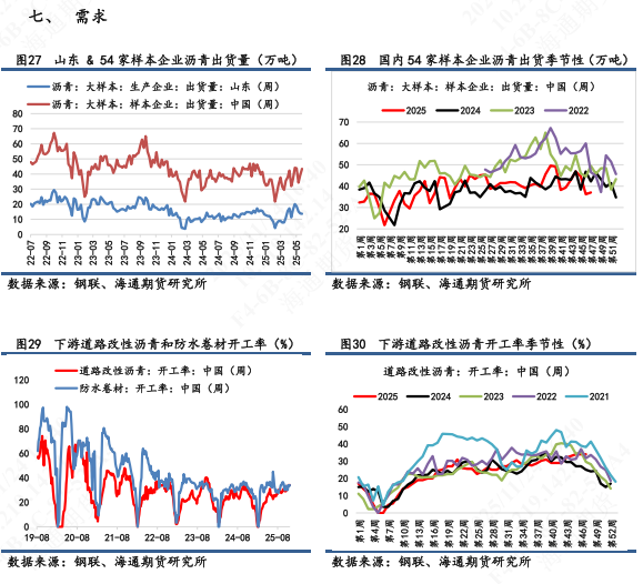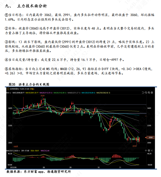 【5】短期展望:基本面上,价格依旧弱势看待,自身上行空间仍受制于需求减弱和库存压力两方面影响,关注冬储行情是否起色。年底前OPEC+增产冲击油价重心,沥青大概率跟跌重心下移。技术面上,沥青价格底部震荡,往下走的空间有限,预期弱势震荡。