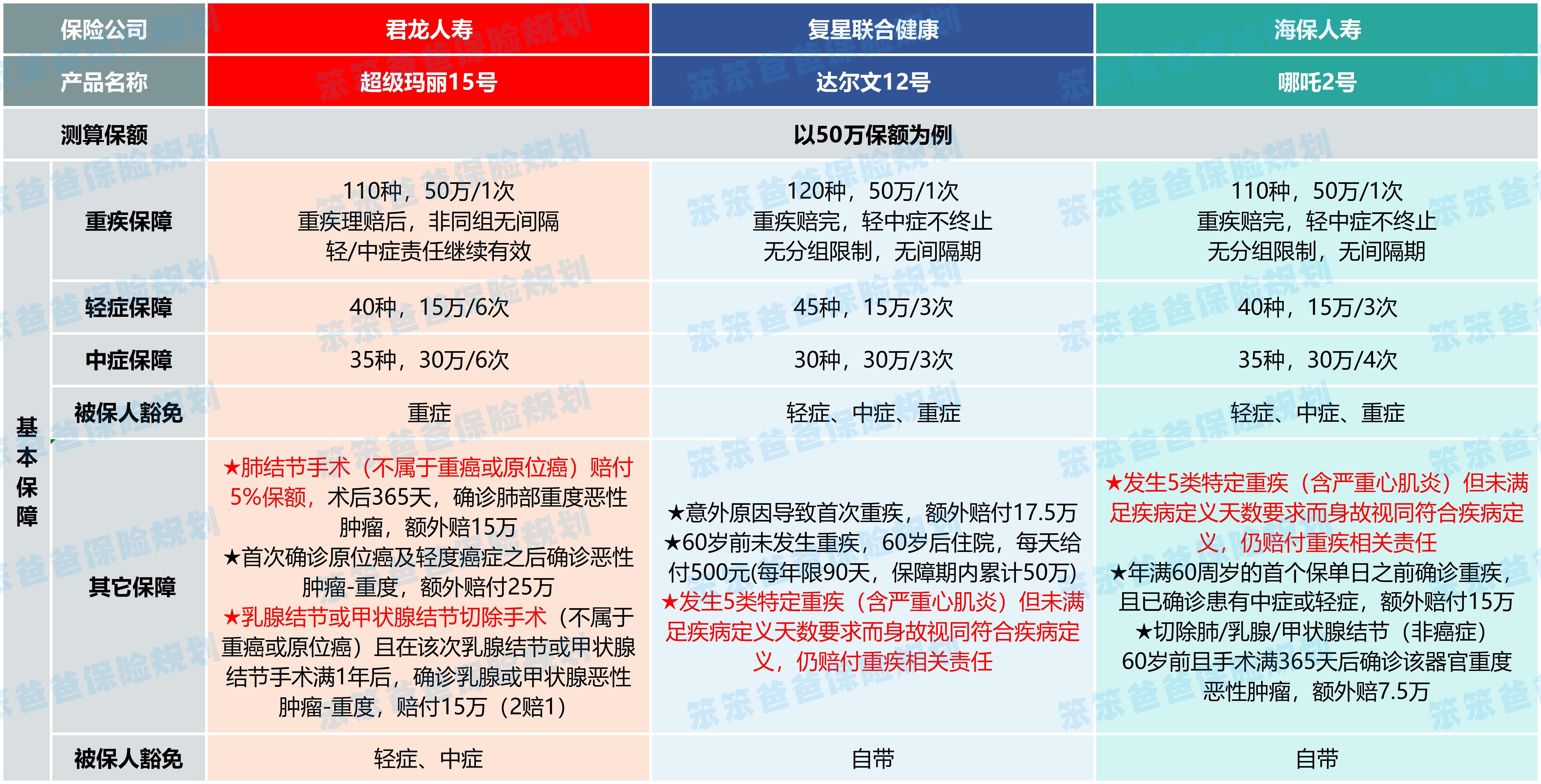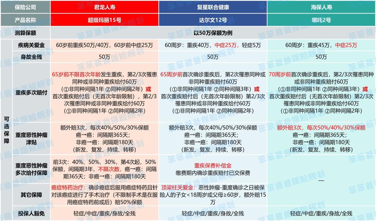 重疾险对比:超级玛丽15号和达尔文12号和哪吒2号,谁更值得买?