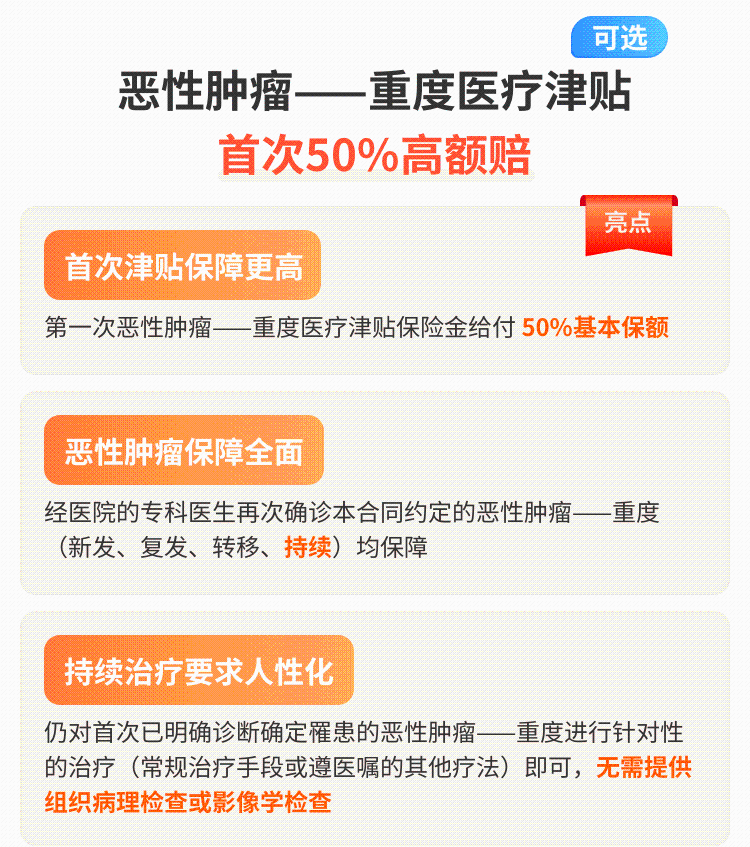 这是可选责任里的亮点,确诊癌症时,只要有未满18岁的孩子或满60岁的父母(亲生、领养、继亲都算),就能额外赔30%保额,而且价格极低!