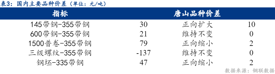 华东与华北地区价差正向扩大10元/吨,华南与华北价差正向扩大10元/吨。
