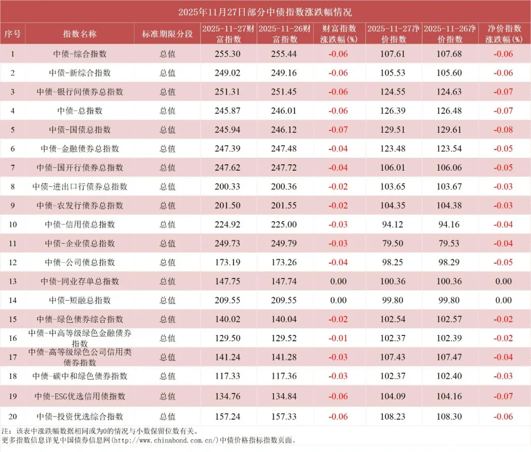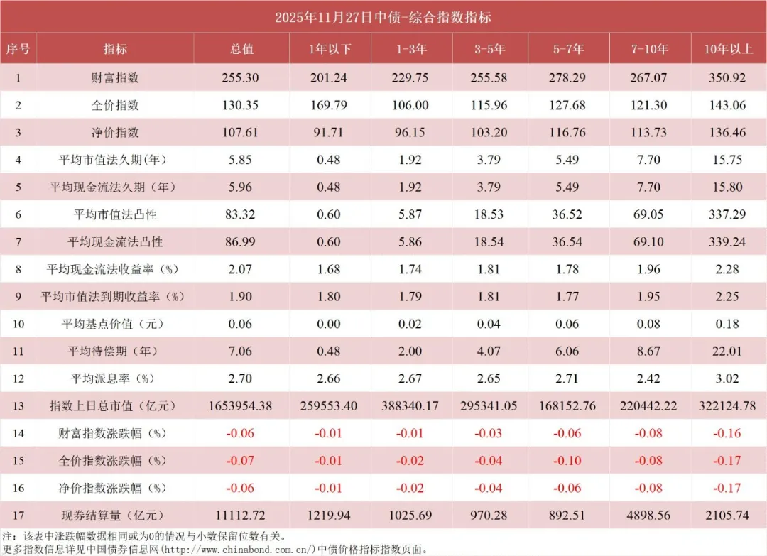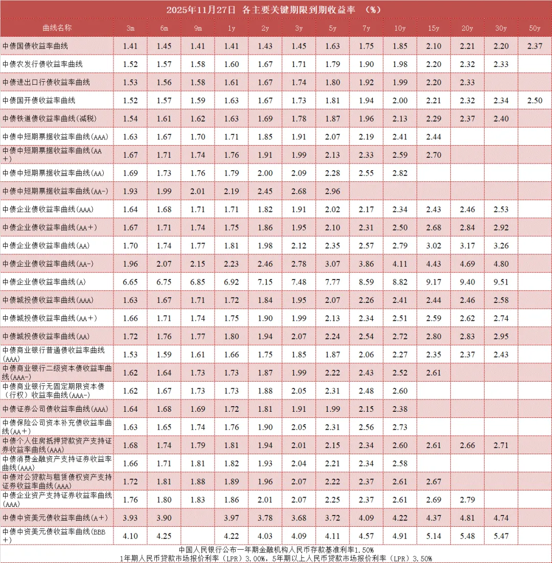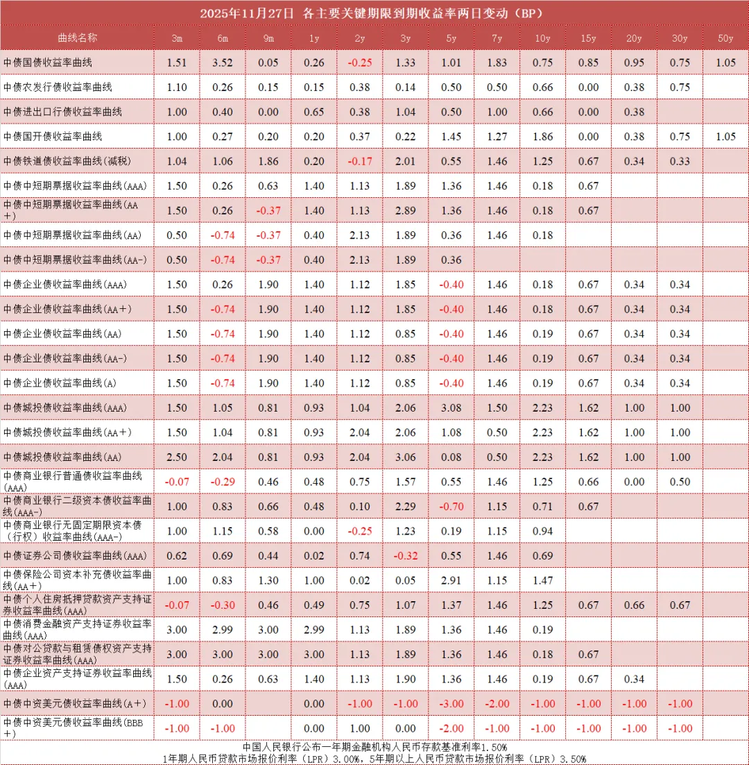 债市值言:中债收益率曲线和指数日评2025年11月27日
