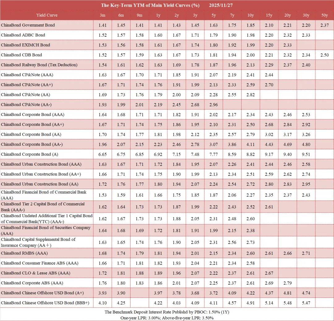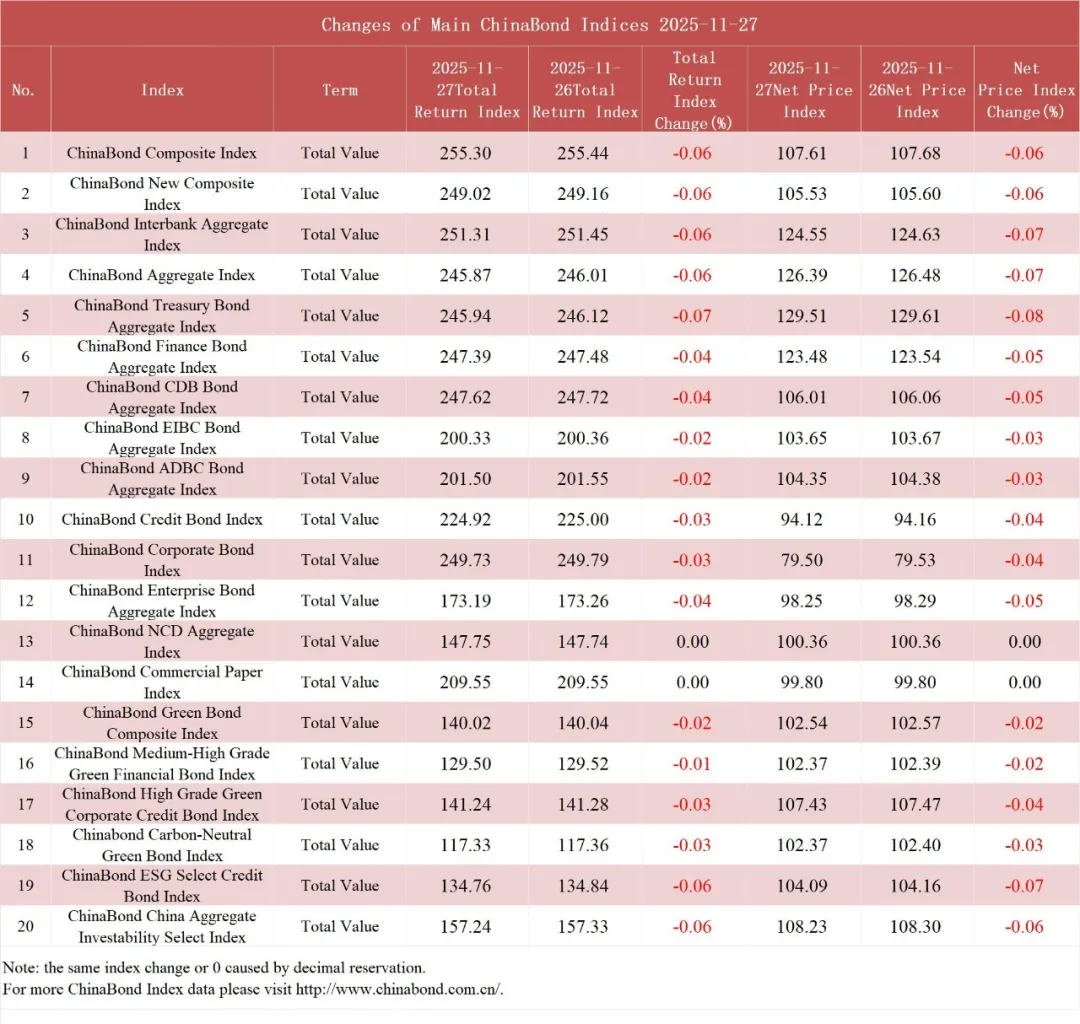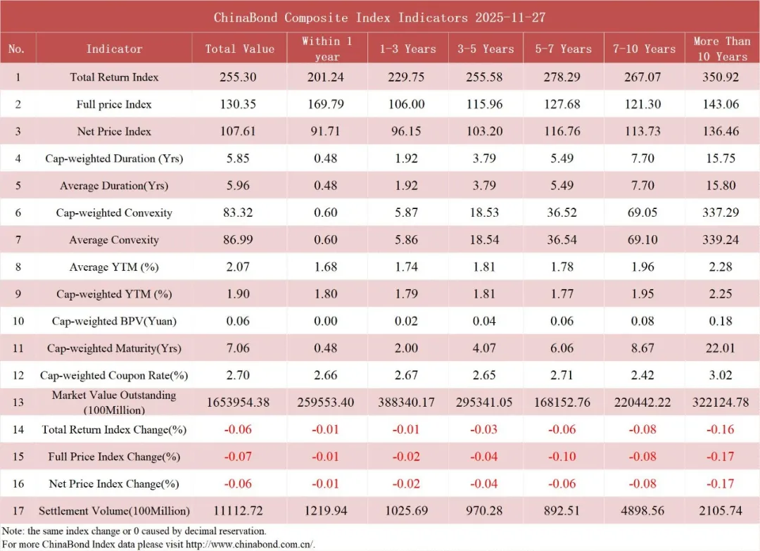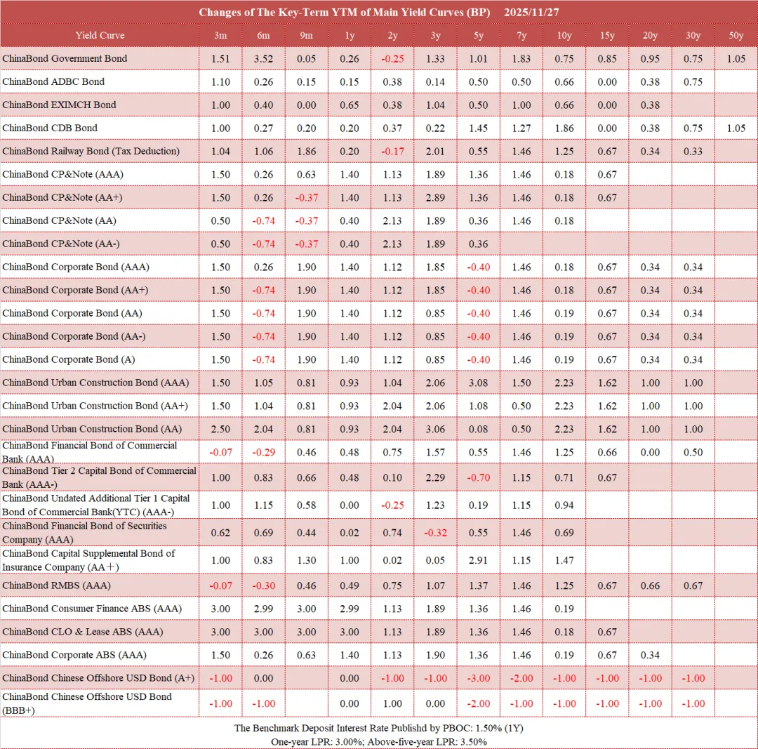 债市值言:中债收益率曲线和指数日评2025年11月27日