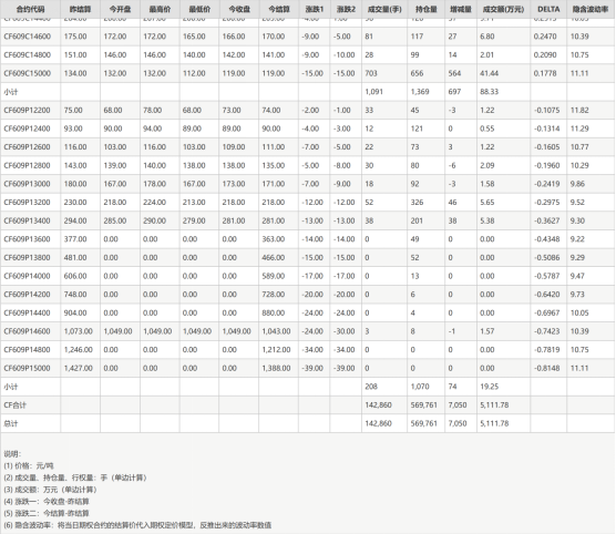 当日,棉花期权共达成142860手成交量,其总持仓数量为569761手,相较于前一交易日,持仓量增持7050手。