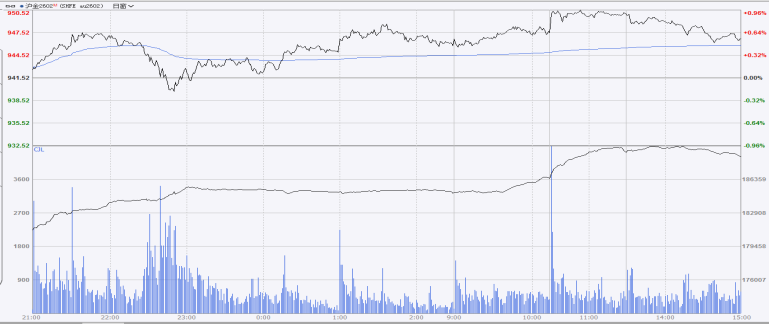 上期所黄金期货主力合约分时图