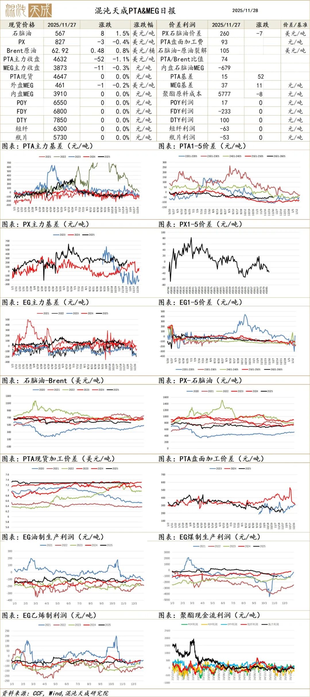 3、供需平衡低库存,仍有转弱预期。PX、PTA短期平衡,终端内需超预期,支撑下游高开工。但上周下游接单明显减少,预计开工见顶。而PTA虽有检修,但目前主要集中在11月,目前部分装置已有重启,PX暂无检修计划,预计PX-聚酯将呈现阶段性小幅过剩状态。