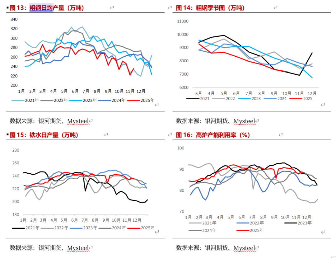 下游库存方面,如前文所述,钢材利润近期略有修复,同时12月临近年底,钢厂或有阶段性补库需求。不过由于今年过年时间较晚以及钢材利润绝对值仍然偏低,预计补库力度较为有限。
