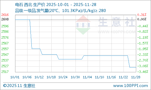 上游电石方面,进入11月,电石价格持续下行,本周,电石市场仍表现偏弱,价格延续跌势。据生意社商品分析系统,本周跌幅为0.79%。上游原料价格弱势,给PVC带来一定利空。