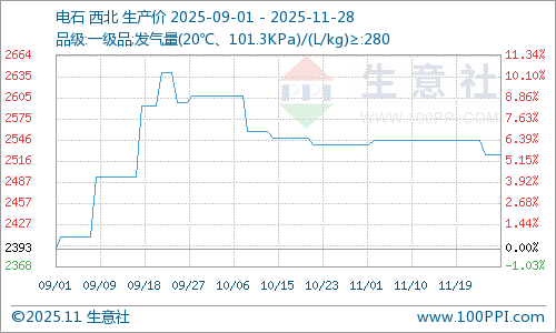 上游电石方面,11月份以来,电石价格延续10月份跌势,且跌幅明显放缓,根据生意社监测的数据显示,11月电石跌幅为0.55%,受制于成本面的弱势,叠加供需面的压制,PVC行情并无起色。