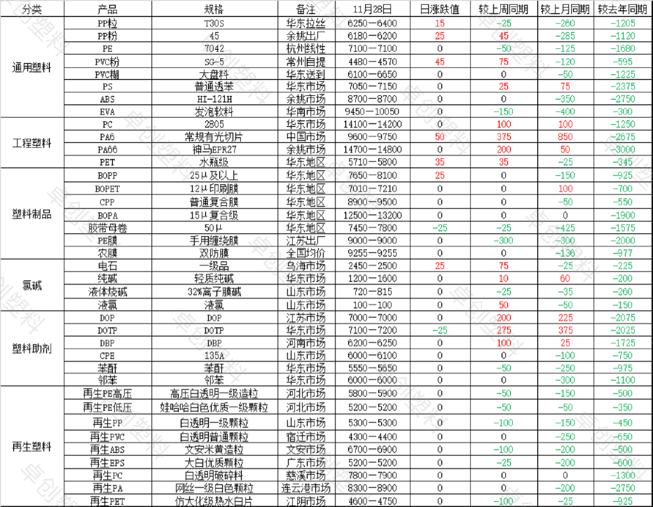 备注:以上表中所取价格为各产品代表市场或是代表区域价格,价格为截止到16:30的收盘价格,更多市场价格及详情内容请关注卓创资讯各产品网站或手机客户端。
