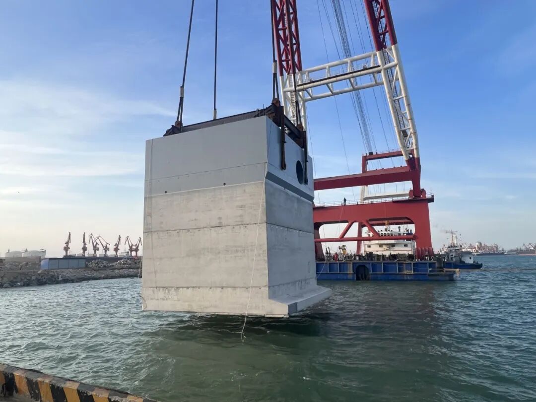 项目位于山东省烟台市,主要建设内容是在原二期码头基础上新建东护岸(兼作工作船码头)和北护岸,并完成陆域回填施工。其中东护岸采用重力式沉箱结构。建设过程中,项目团队克服天气、潮汐等不利因素影响,科学调配航道和施工船舶,创新采用吊架无人摘挂钩技术,创造了高峰时段10小时连续安装5个沉箱的施工纪录,用时18天完成全部沉箱的出运安装作业,助力项目稳步推进。(通讯员姜文强)